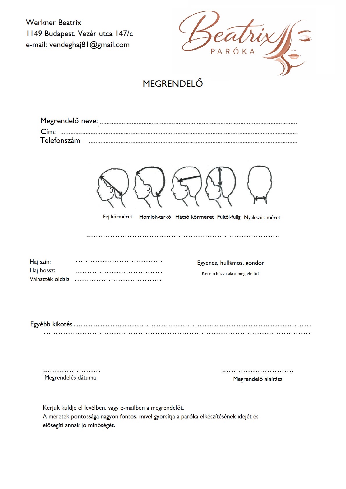 Sokszor problémát okoz a személyes találkozó, mert az ügyfelek vidéken, esetleg külföldön élnek, vagy bármi oknál fogva nem tudnak eljönni, ehhez segítség gyanánt az itt letölthető megrendelő kitöltése és e-mailben elküldése el tudja indítani a folyamatot, amennyiben a leírás nem teljesen érthető úgy a lenti youtube videón minden méret vétel megtalálható.